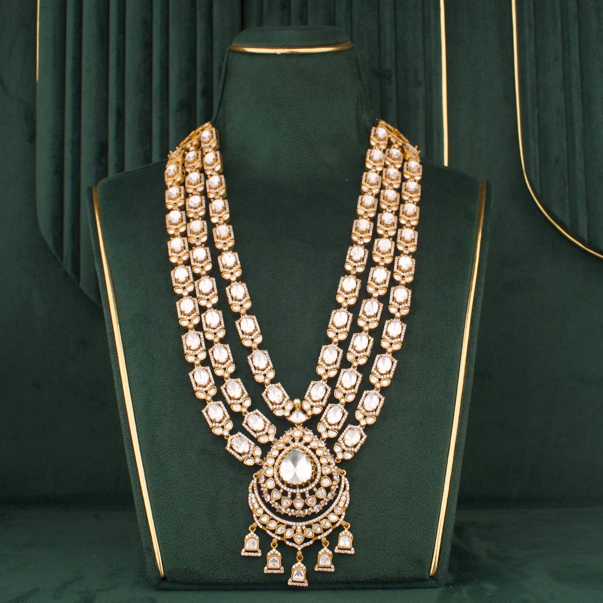 Antique Gold Victorian Polki Bridal Necklace Set With Cz Stones And Jhumka Earrings