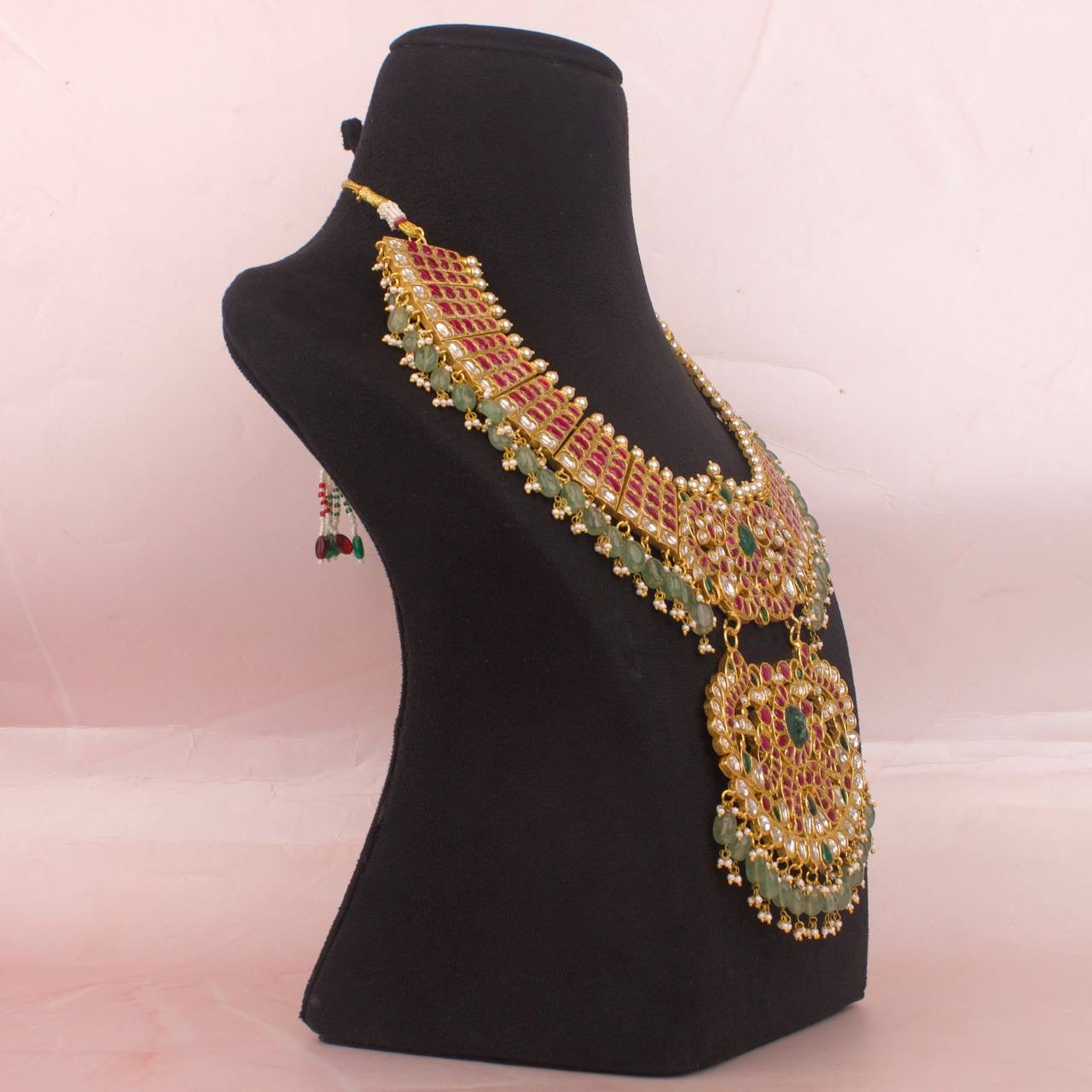 Bridal Heavy Jadau Kundan Necklace With Strawberry Beads as Hangings