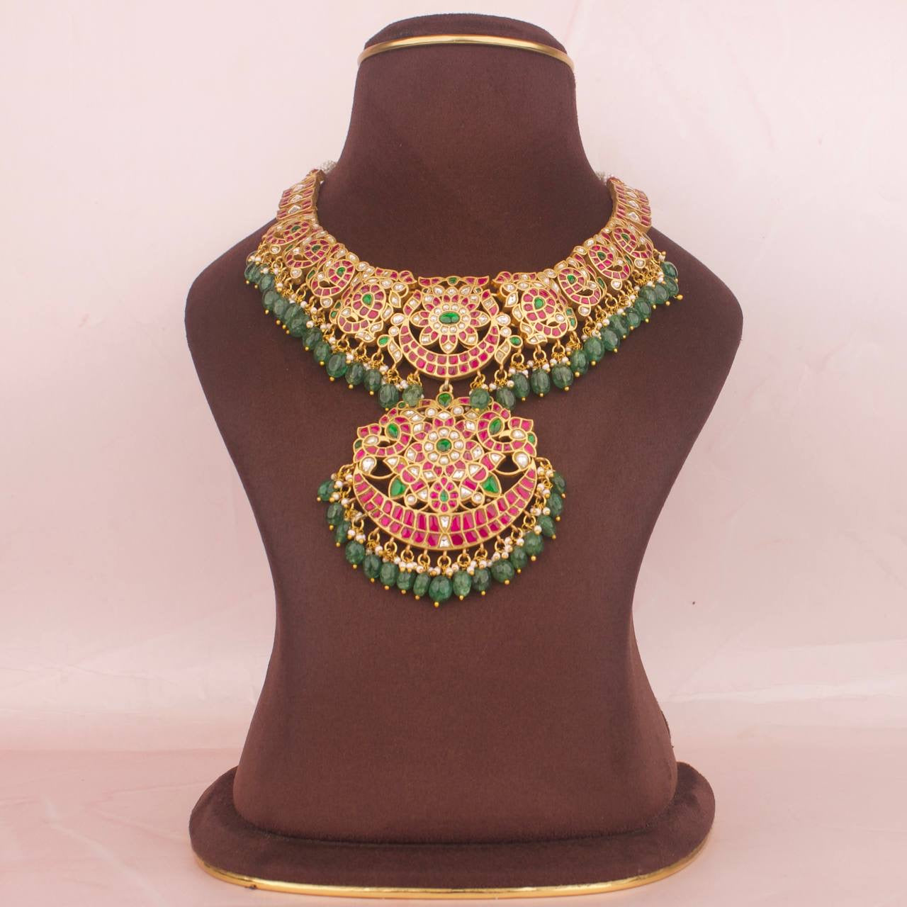 Meticulously handcrafted for lasting beauty, the piece pairs intricate metalwork with a secure clasp and comfortable wear. The warm gold finish and richly colored stones make it a standout in any bridal jewelry collection, perfect beside red, emerald, or ivory lehengas and sarees. This necklace blends traditional Indian jewelry craftsmanship with contemporary sensibilities, ensuring you shine at every sacred moment.