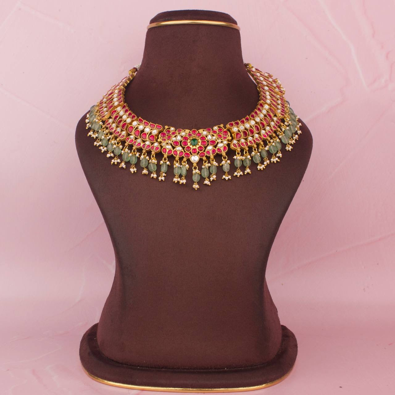 Bridal Jadau Kundan Necklace With Beads Hanging