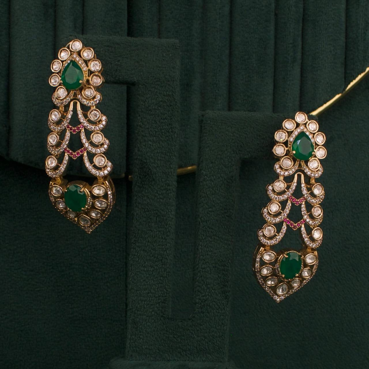 The Bridal Moissanite Polki Choker Set With Hanging Earrings is a bridal jewelry ensemble that brings timeless sparkle to your wedding day. Designed for brides who love classic, polki-inspired brilliance, this moissanite set pairs a graceful choker with matching hanging earrings for a cohesive, elegant look.