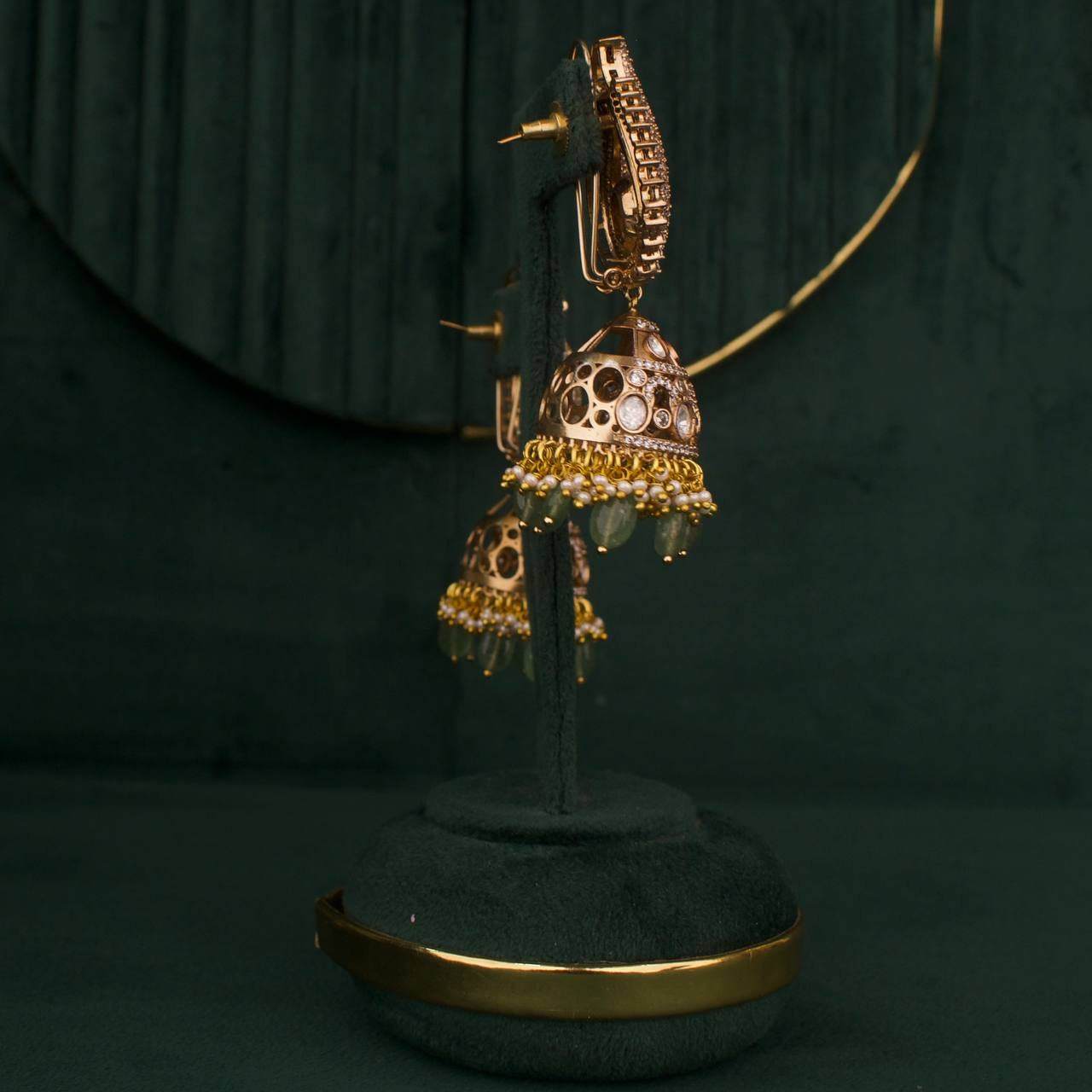 - Moissanite Polki stones provide brilliant, authentic-looking sparkle with a modern twist on a timeless aesthetic.