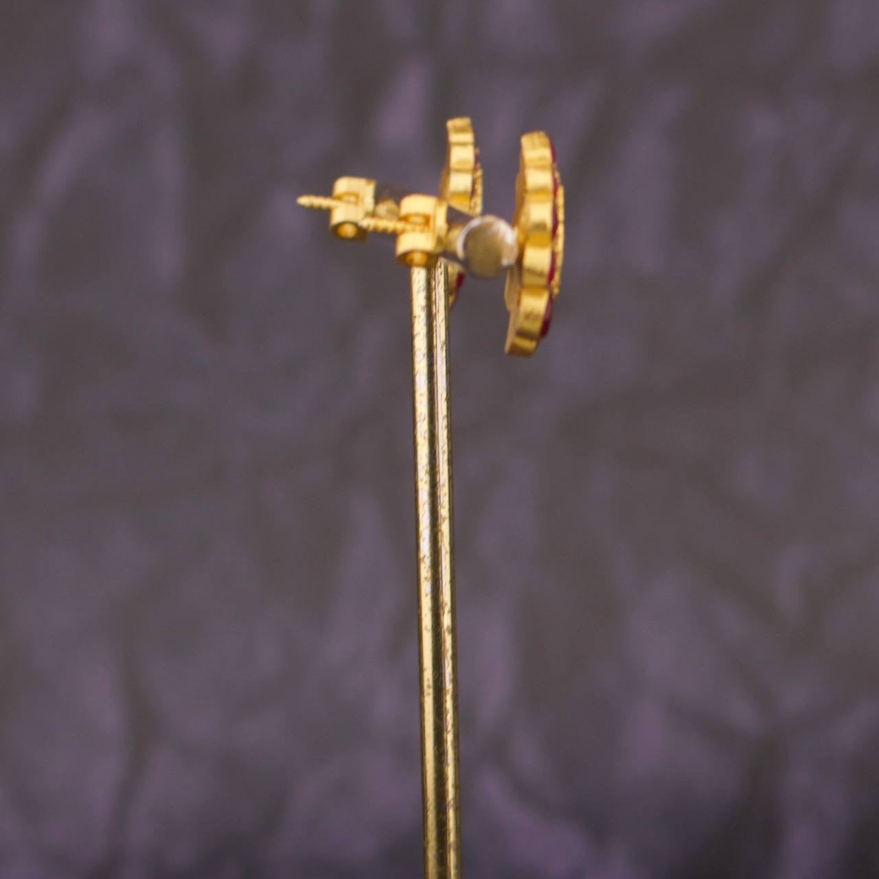 Classic Pear Shape Floral Jadau Kundan Stud Earrings