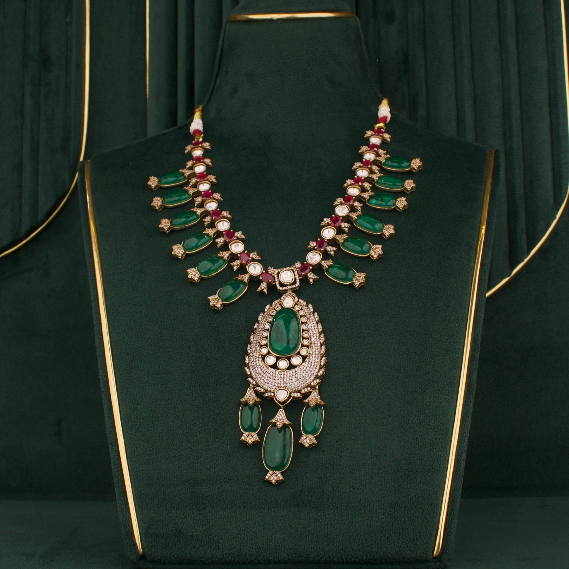 Experience timeless elegance with the Classic Victorian Emerald Polki Necklace Set—a heritage-inspired duo crafted for those who treasure vintage charm with modern wearability. Designed for brides, guests, and anyone seeking a refined, statement piece, it elevates any formal look with a touch of antique allure.