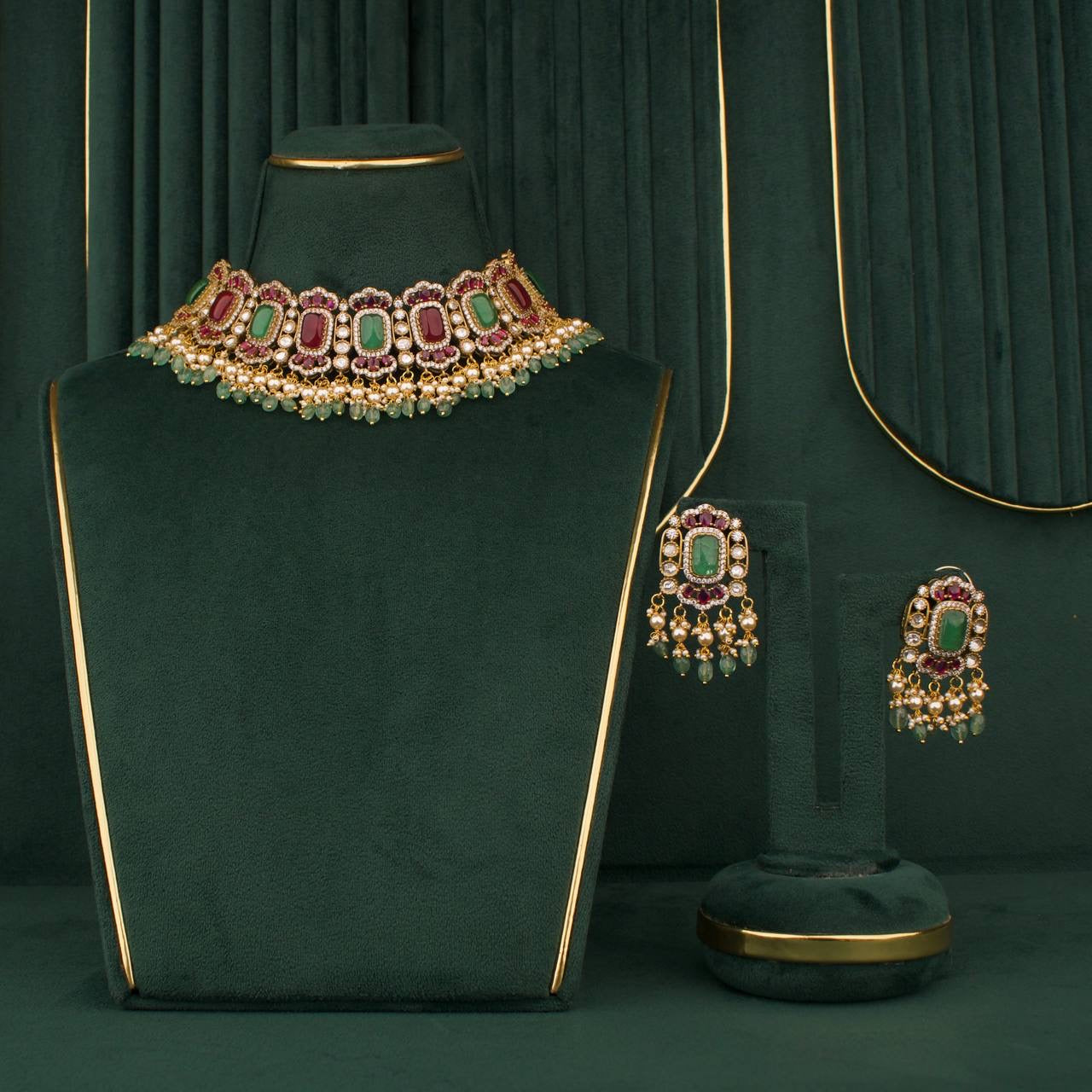 Designer Victorian Polki Fusion Chokers With Matching Earrings are a coordinated jewelry set that blends timeless Victorian aesthetics with contemporary fusion flair. This choker-and-earrings duo is designed for those who want a standout, refined look for weddings, formal events, and special occasions.