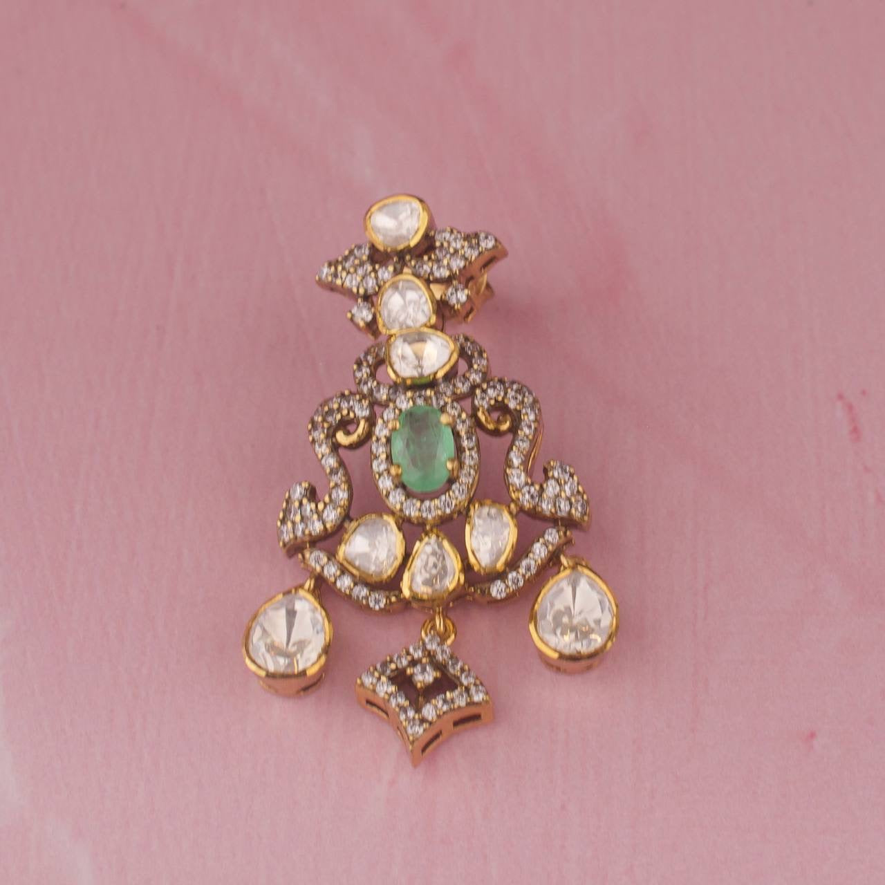 Elegant 925 Silver Moissanite Polki Necklace Set With Matching Earrings
