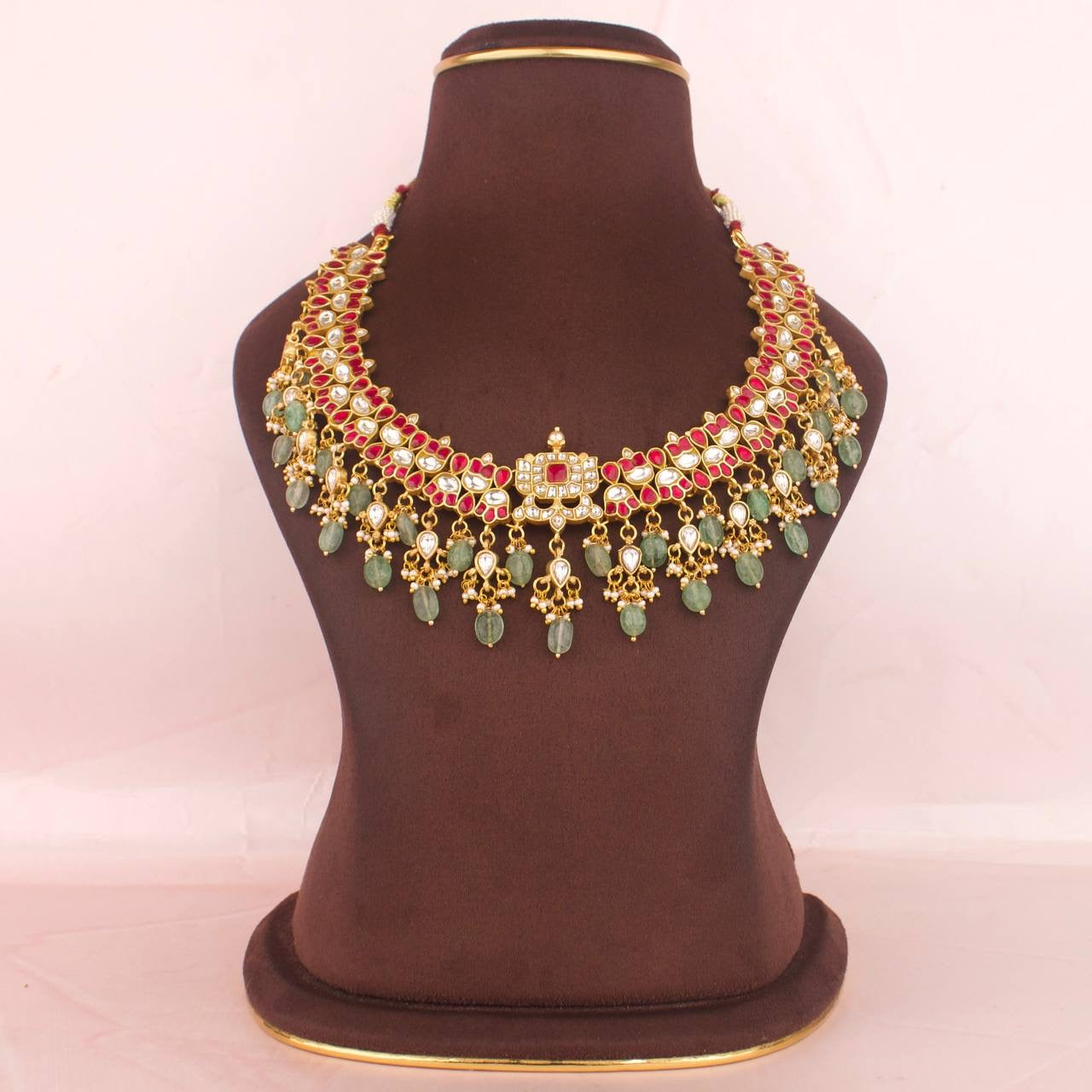 Elegant Jadau Kundan Necklace With Kundan Locket Droplets