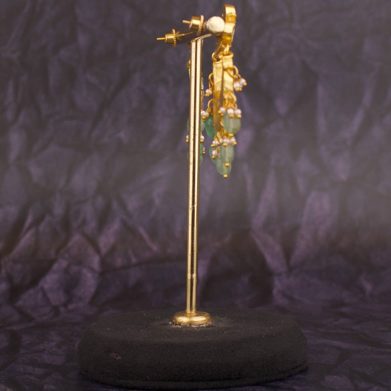 These earrings elevate any look with a luminous, timeless appeal. The floral design and kundan stones catch light from every angle, enhancing your presence at ceremonies and celebrations. Pair with sarees, lehengas, or elegant gowns for a polished, bridal-inspired look that remains comfortable throughout long events.