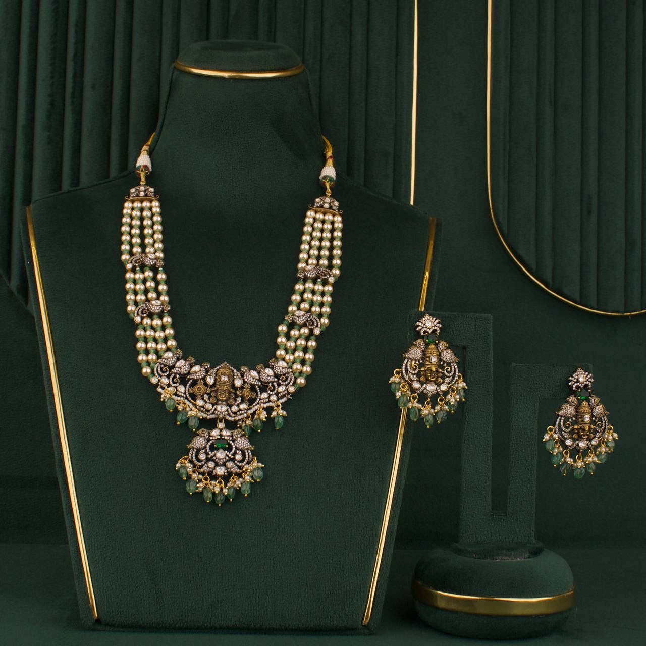 Elevate your jewelry collection with this elegant set—add the Gold Inspired Designer Lord Balaji beads Necklace Set With Matching Earrings to your cart today and shine at every celebration.