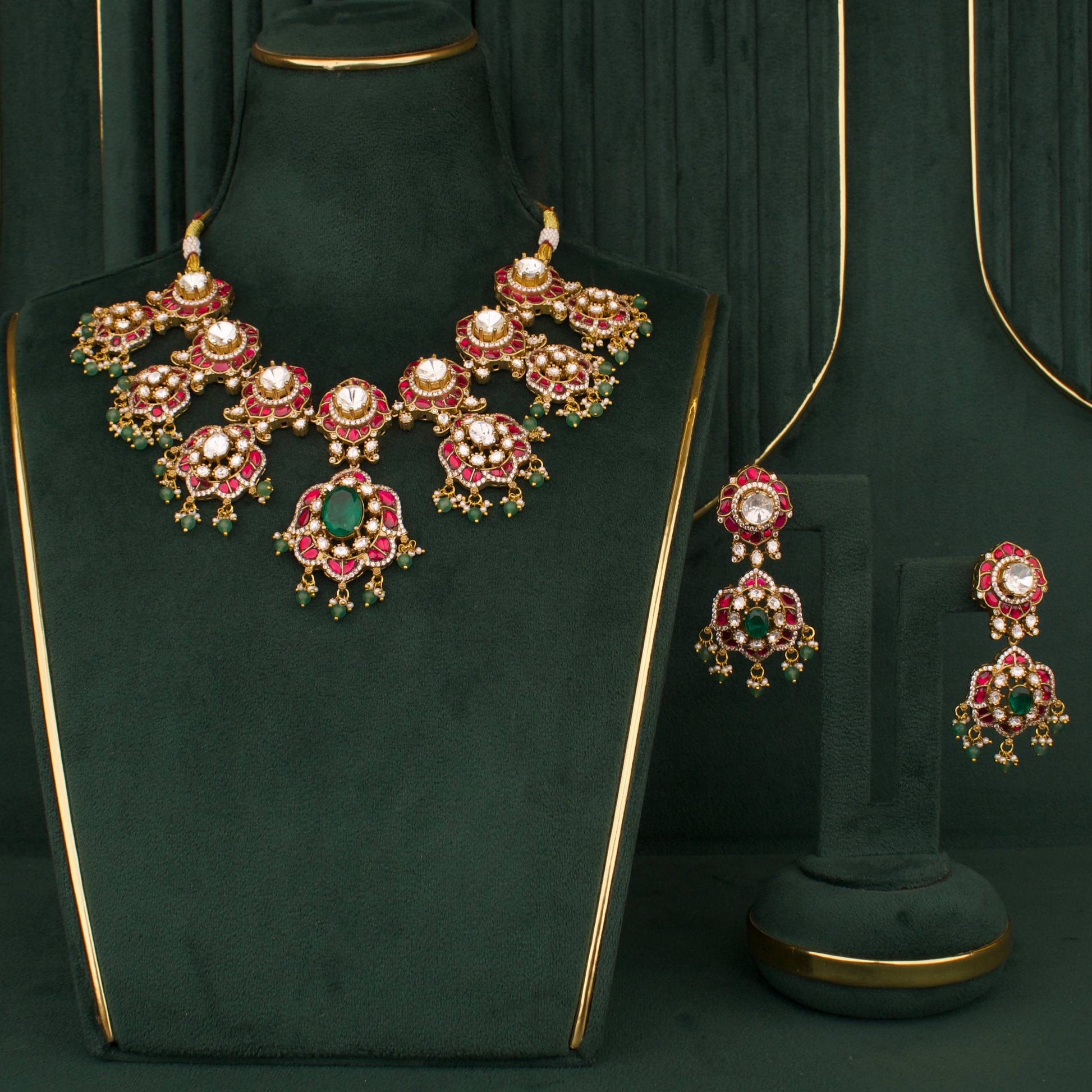 The length of the jewellery can be customised and the gemstones can be customised to different colours. However, this may not be available for all products; Drop us an E-mail at support@dulhanjewels.com or message us on WhatsApp: +91 9390096228 to mention your requirements! :)