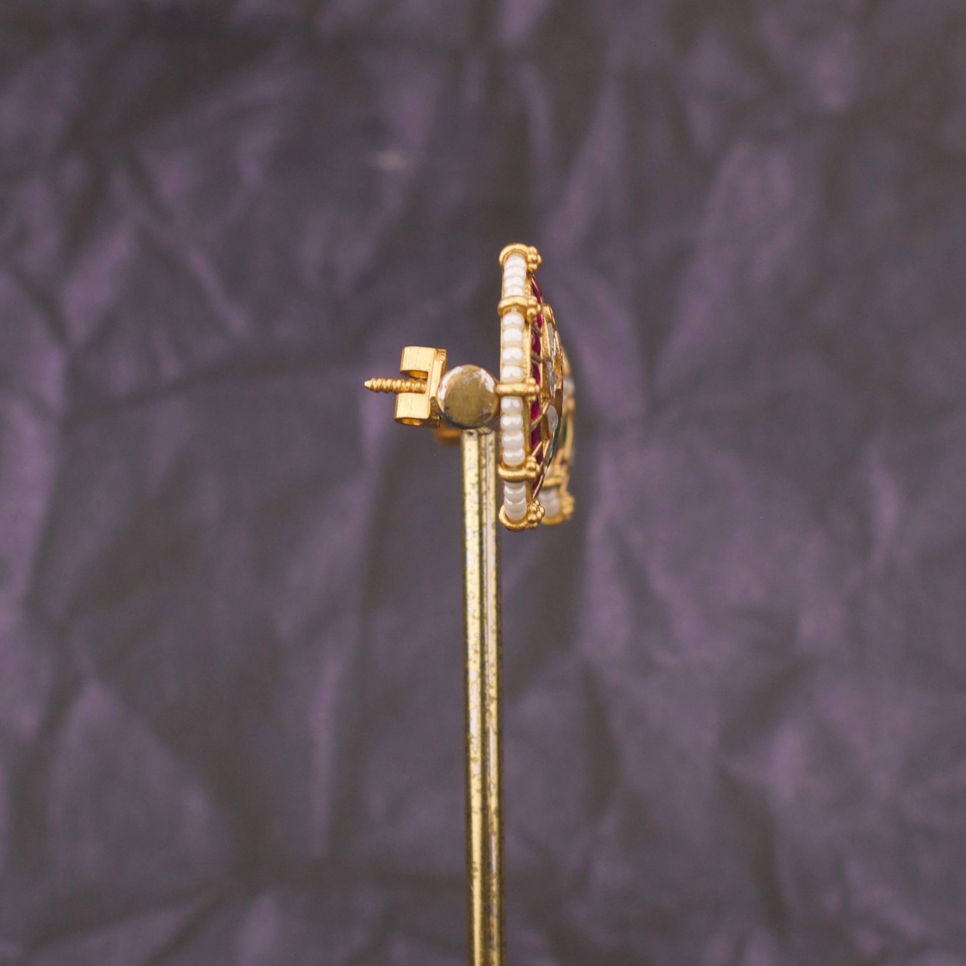 Step into the ceremony with a touch of timeless artistry. These Jadau Kundan Peacock Stud Earrings With Pearl Border fuse centuries-old Indian craftsmanship with contemporary bridal and festive styling, delivering a standout finish to your ensemble.