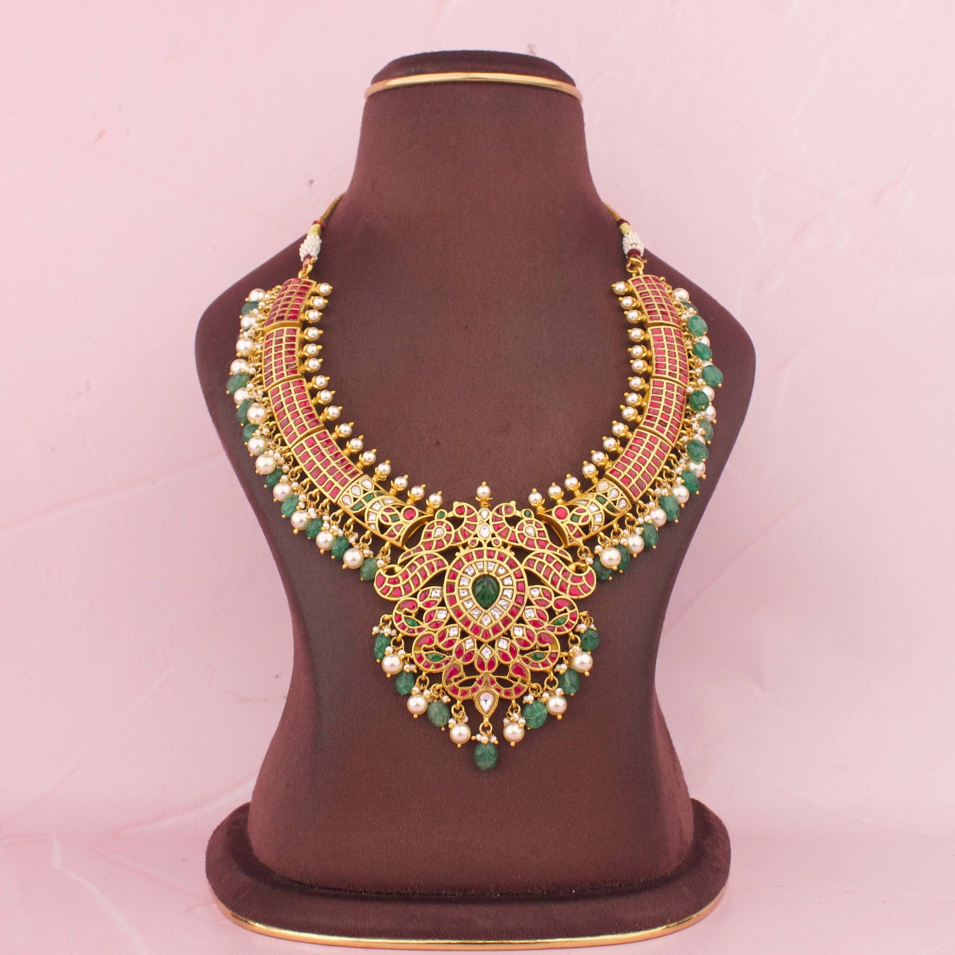 Luxury Jadau Kundan Necklace With Emerald Drop Pendant