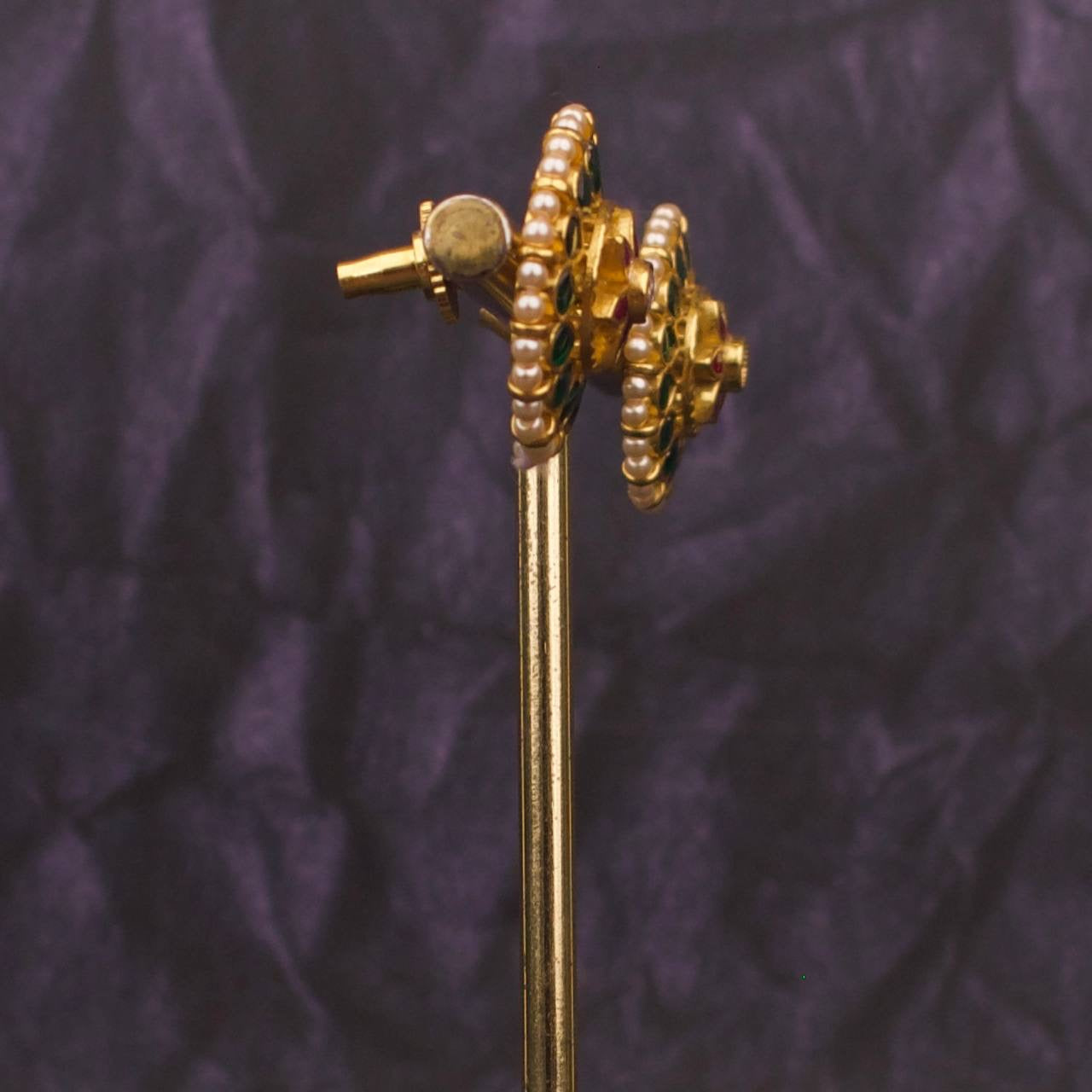 Elevate your festive and wedding looks with the Multi Colour Jadau Kundan Stud Earrings With Swarovski Pearl Bordering. This pair blends traditional jewelry artistry with a vibrant color palette, ideal for those who love a statement accessory without overpowering their attire.