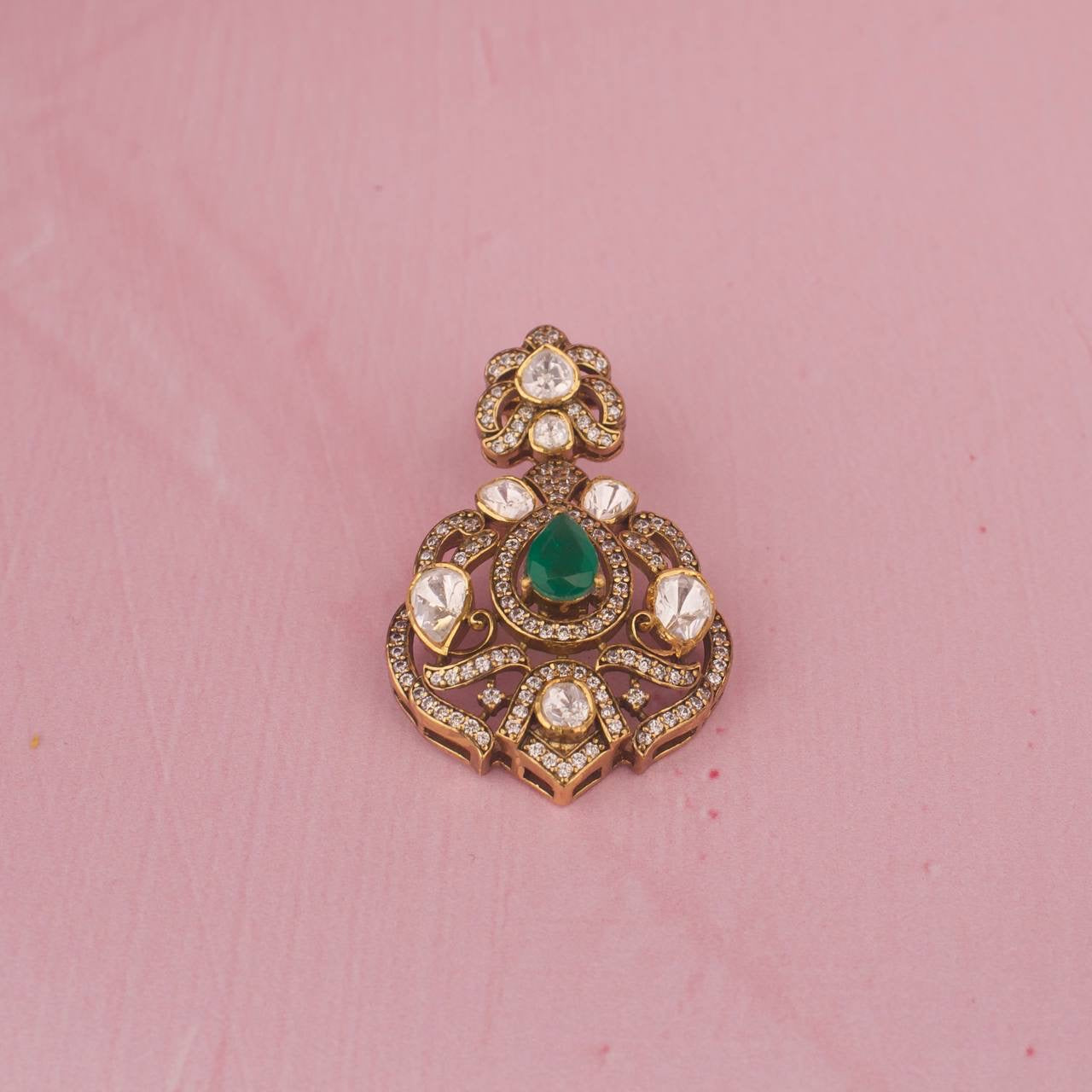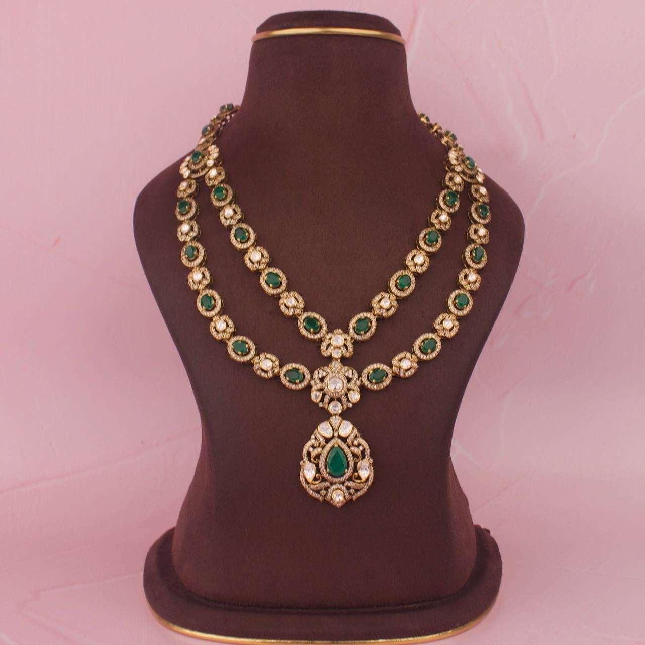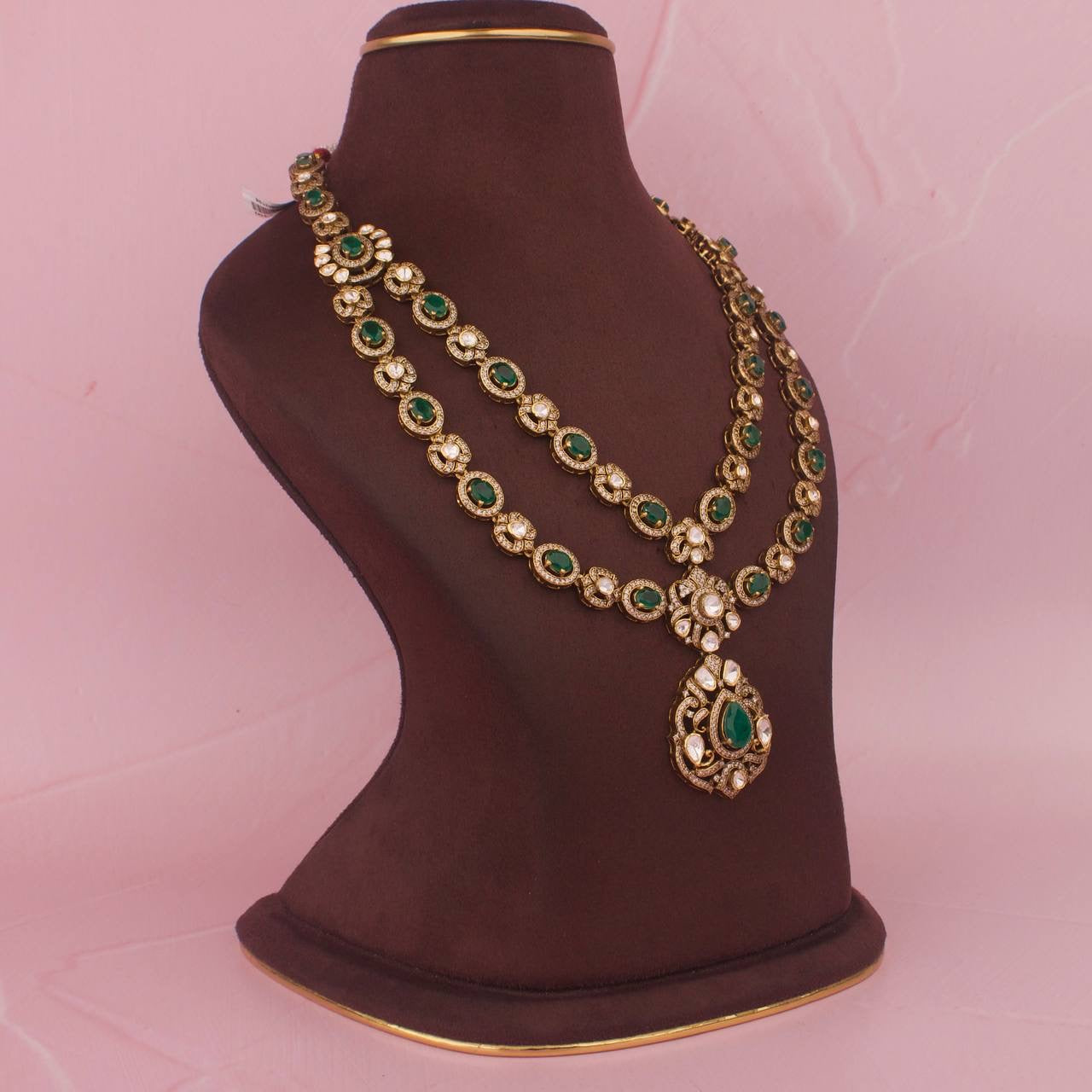 Pure 925 Silver Double Step Moissanite Polki Necklace With Matching Earrings