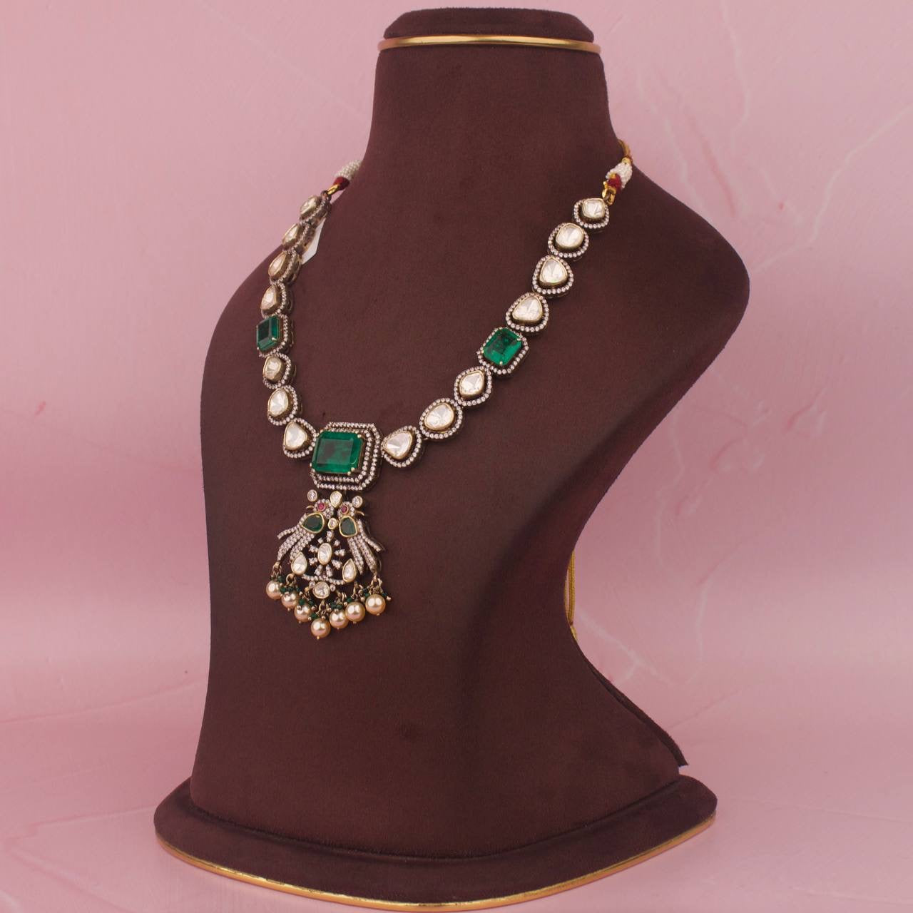 Pure 925 Silver Moissanite Polki Victorian Necklace