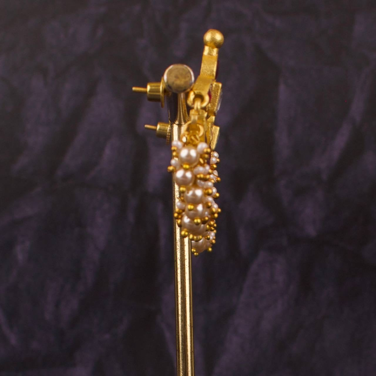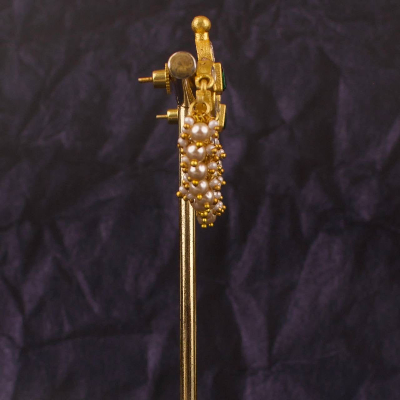 The combination of classic Jadau Kundan with Swarovski Pearl Hangings brings a refined glamour to any look, enhancing facial features with a soft, pearly glow. Perfect for weddings, festivals, and special occasions, these earrings elevate your attire without overpowering it. They work beautifully with both traditional and modern ensembles, adding a touch of regal charm to your overall presence.