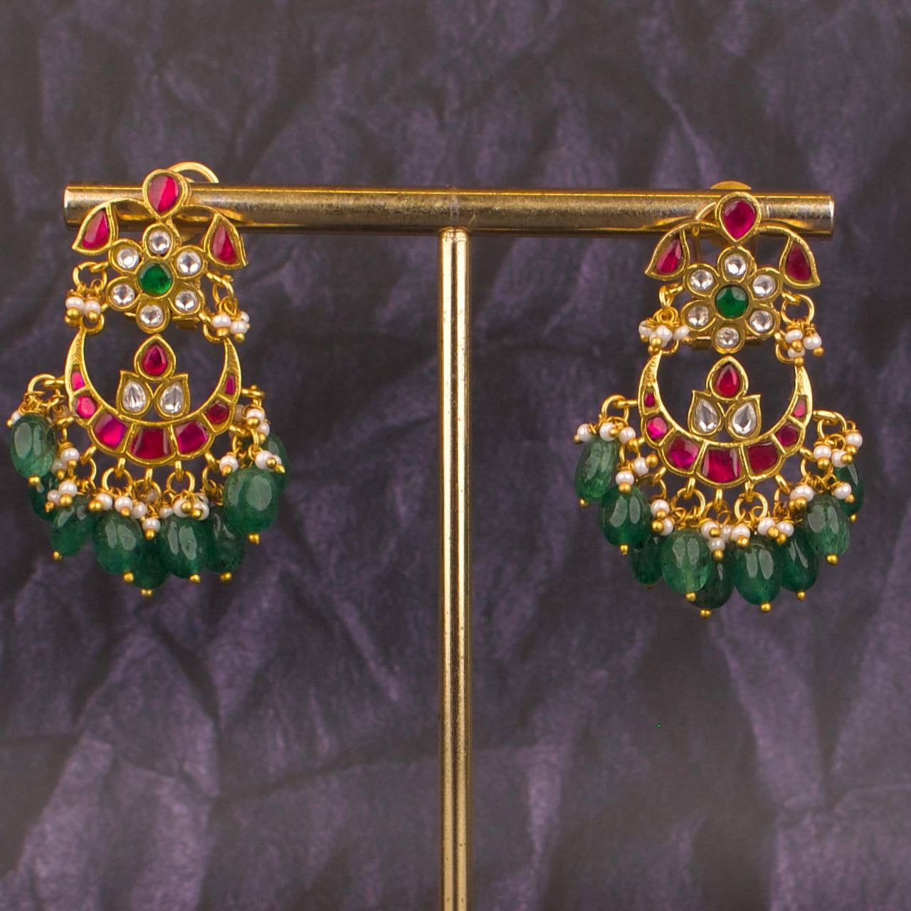 - Chandbali style hanging silhouette that pairs beautifully with sarees, lehengas, and festive gowns.