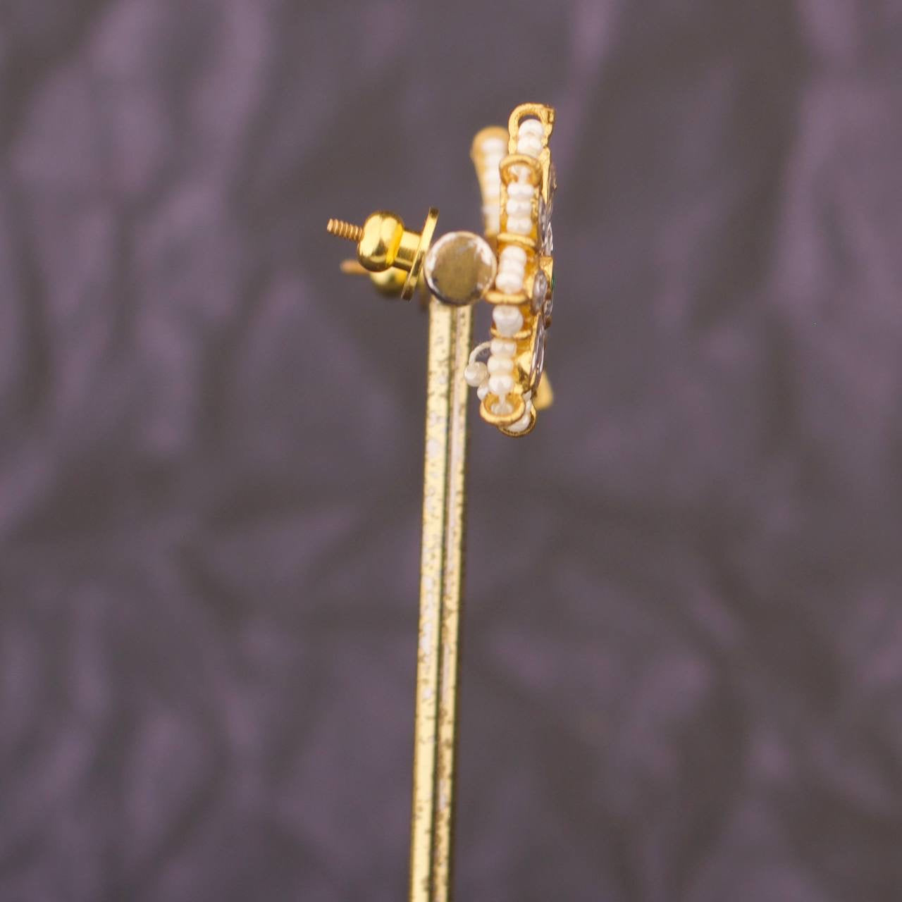Star Floral Jadau Kundan Stud Earrings with Pearl Border
