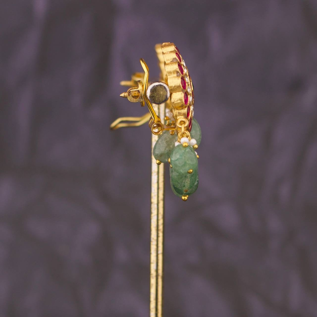 Floral Design Stunning Jadau Kundan Earrings With Hangings