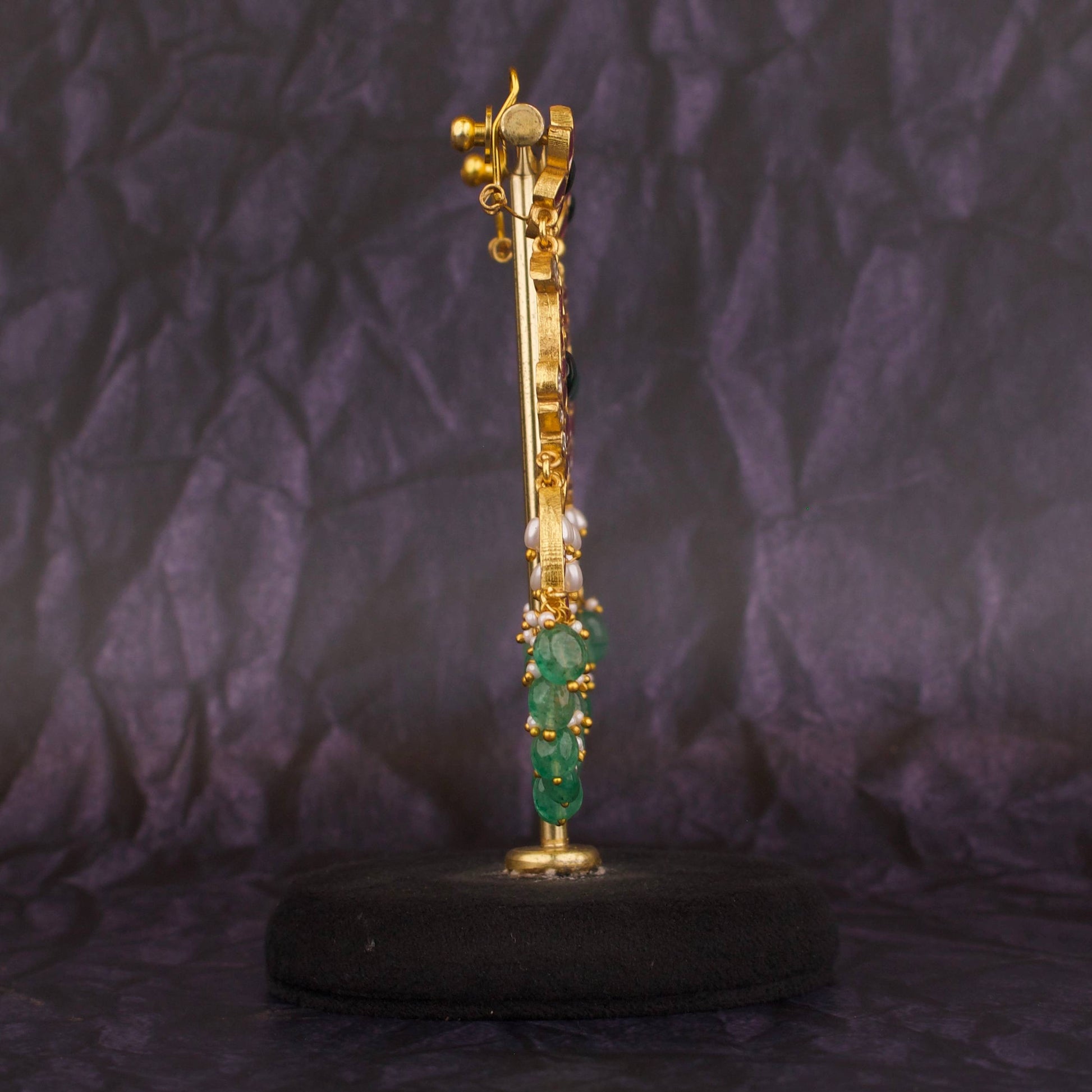 These earrings blend timeless Jadau artistry with sparkling Kundan accents, creating a statement piece for weddings, receptions, and festive celebrations. Perfect for gifting to someone who cherishes classic Indian jewelry.