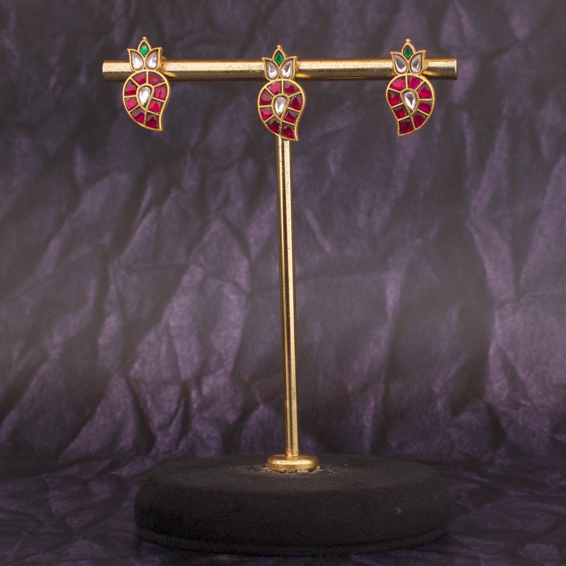 Embrace enduring elegance with the Stylish Jadau Kundan Mango Pendant Set and add a touch of opulence to your jewelry collection today. Treat yourself or gift this exquisite piece to someone special.