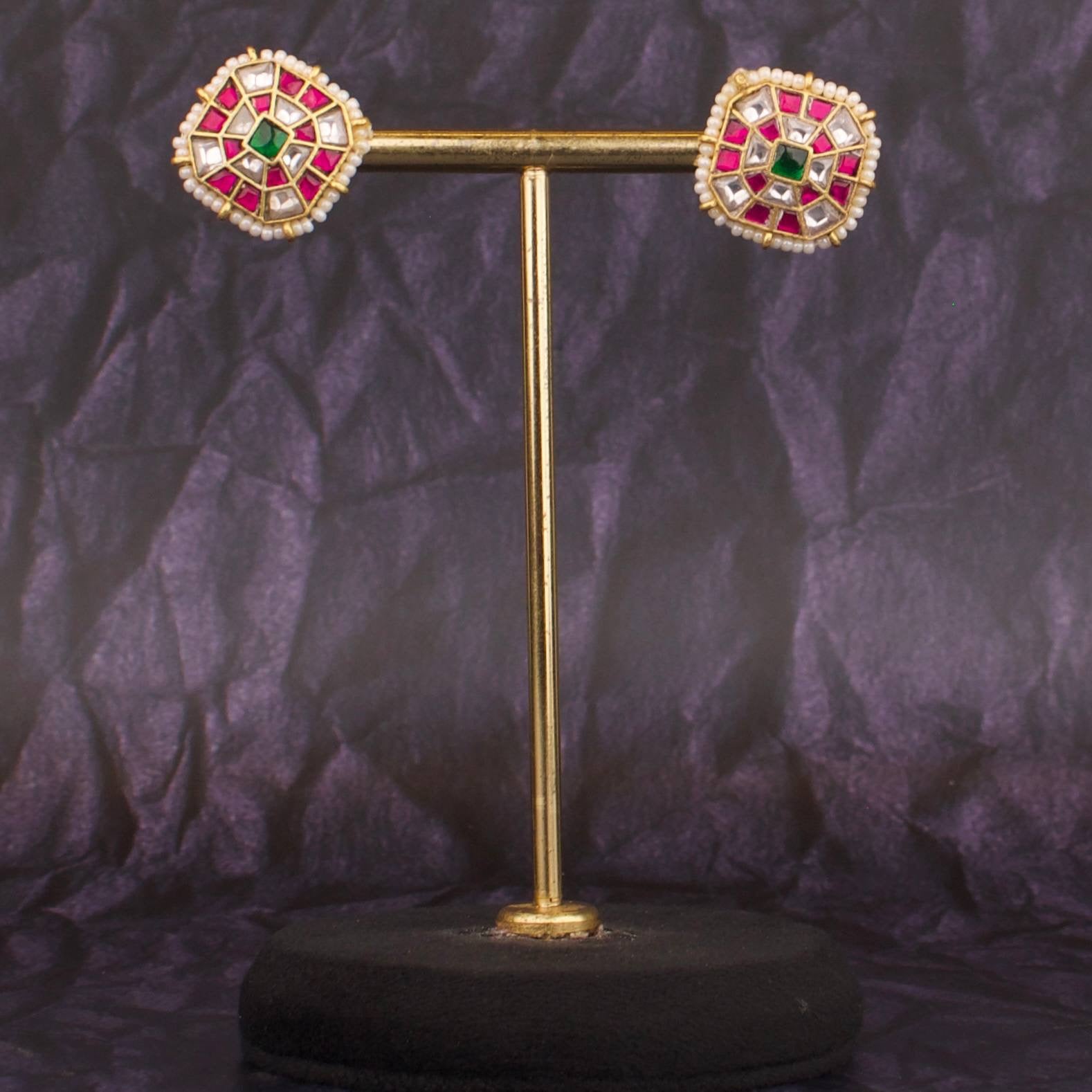 Intricate detailing and a balanced silhouette make them versatile jewelry pieces that pair beautifully with sarees, lehengas, and even chic western dresses. The compact stud design provides comfortable wear throughout the day and into the night, while the skilled craftsmanship reflects a heritage of hand-set stones and meticulous metalwork. Whether you’re dressing for a special occasion or seeking a refined everyday accessory, these earrings deliver timeless appeal.