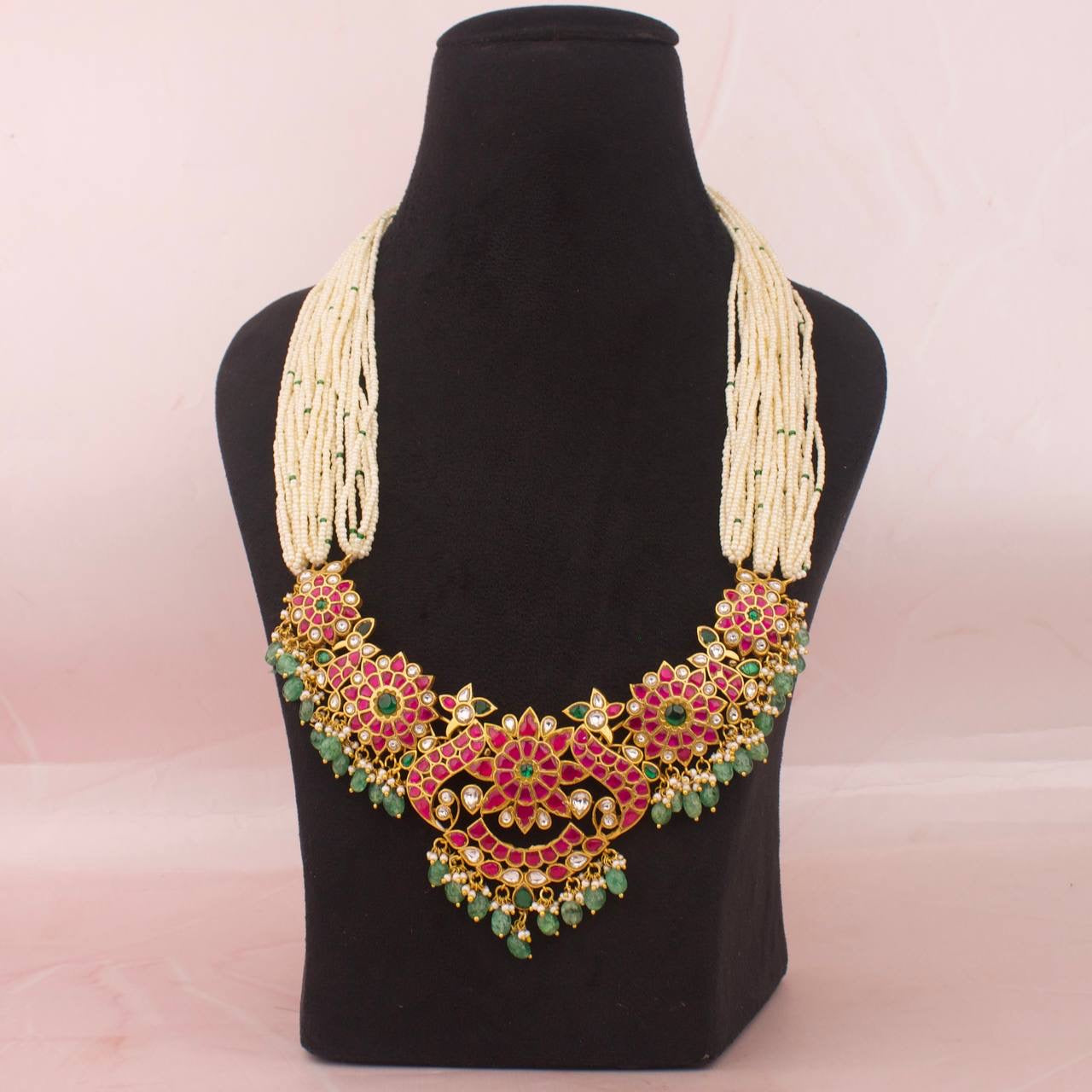 Traditional Bridal Jadau Kundan Rani Haram is the epitome of timeless glamour for a bride on her wedding day. Crafted with the ancient jadau technique and lush kundan stones, this regal haram elevates any bridal ensemble and stands as a pinnacle of jadau jewelry.