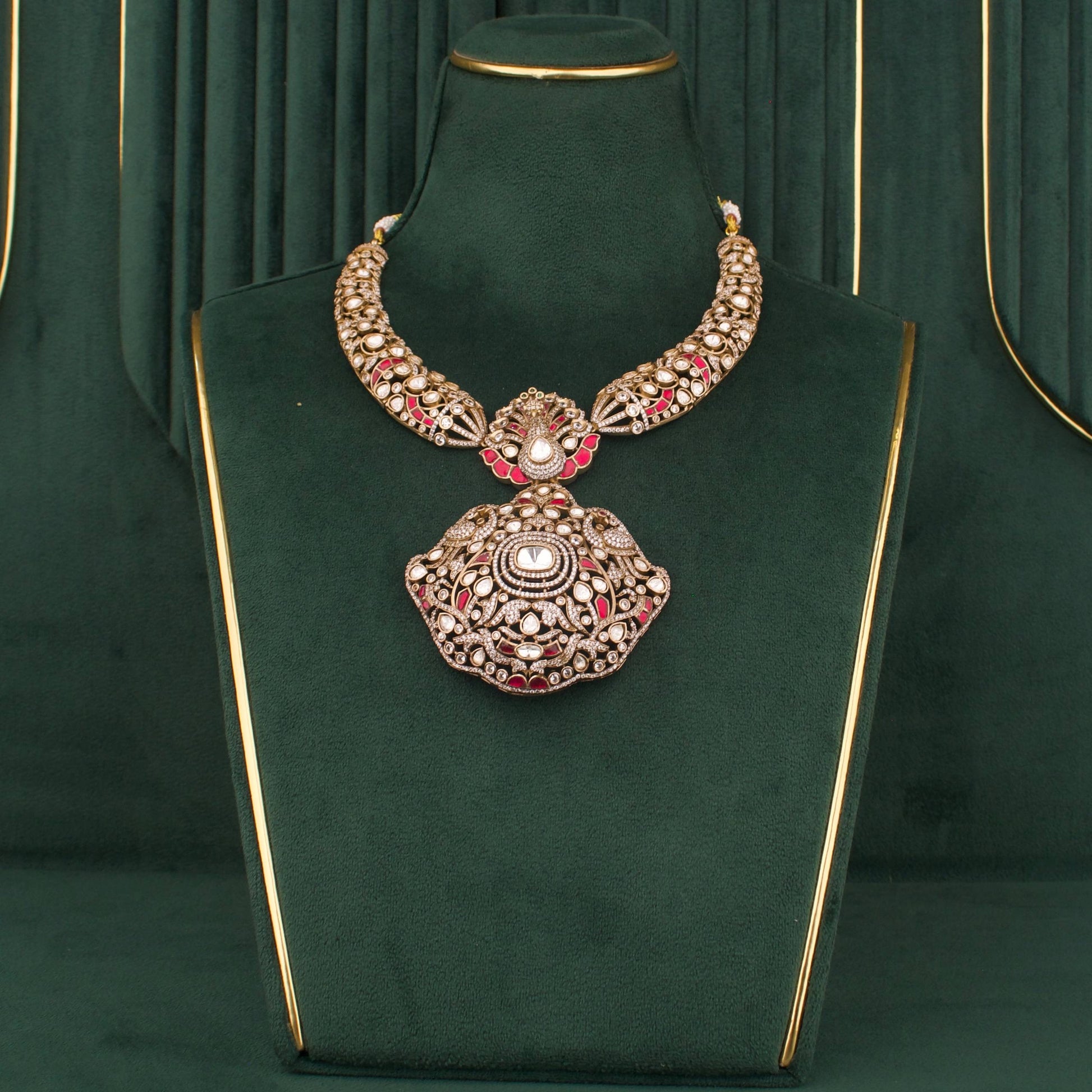 - Traditional fusion design: a seamless blend of Kundan and Polki artistry presented in a contemporary silhouette.
