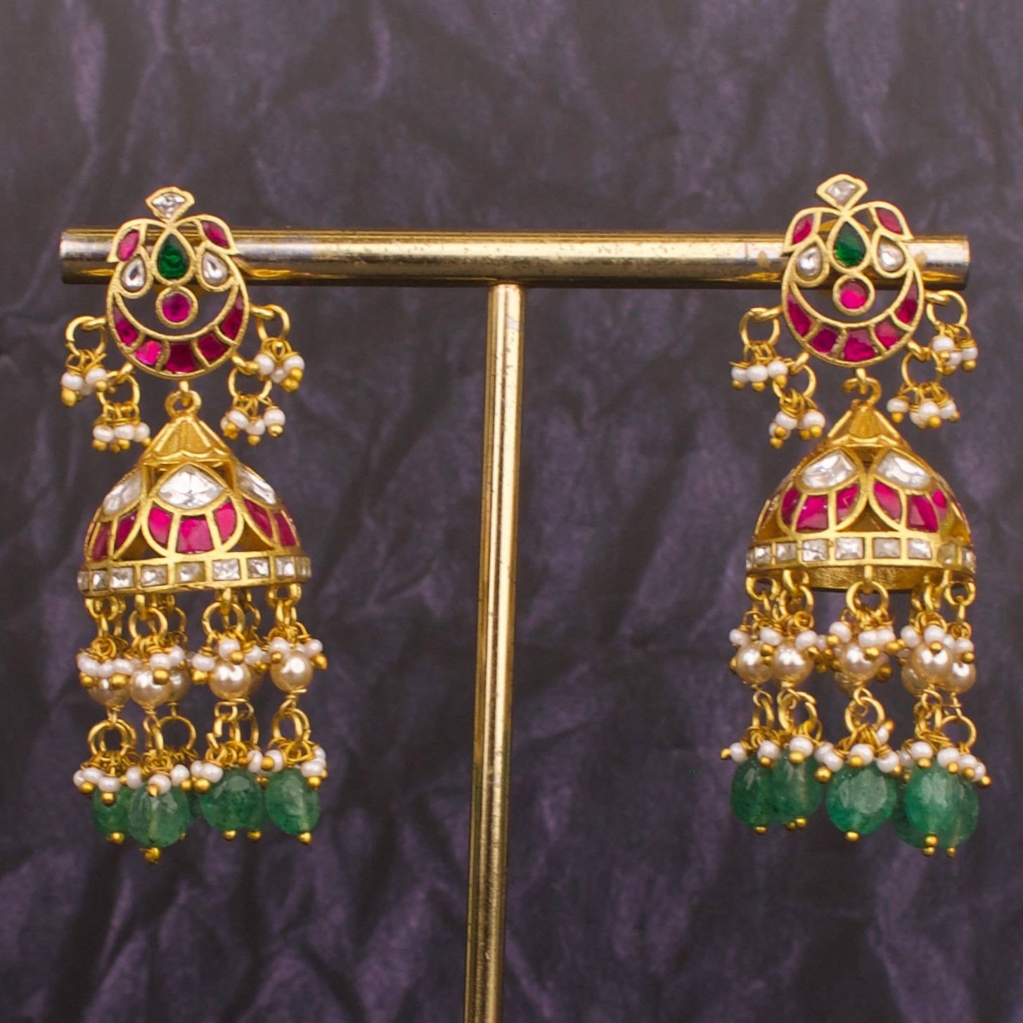 Unique Hand Crafted Jadau Kundan Jhumki With Pearl & Beads Droplet