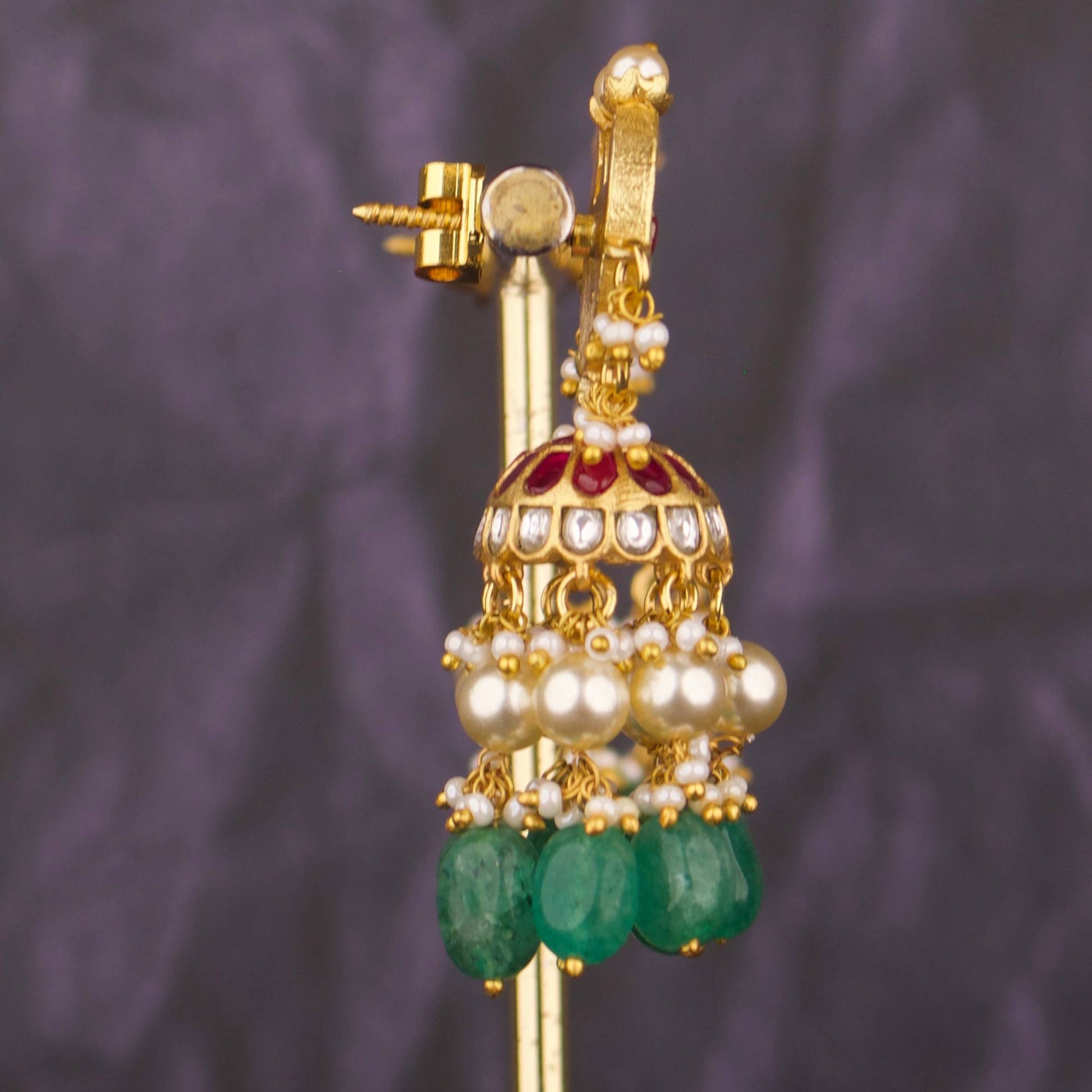 Unique Studded Jadau Kundan Guttapusalu Hangings Jhumki Earrings
