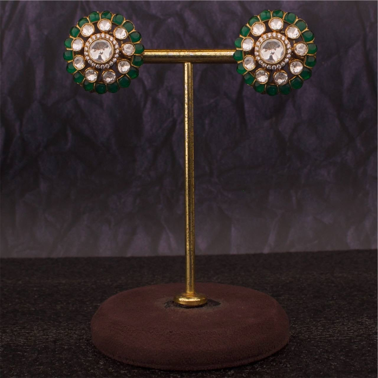 Victorian Finish Pure 925 Silver Moissanite Polki Stud Earrings