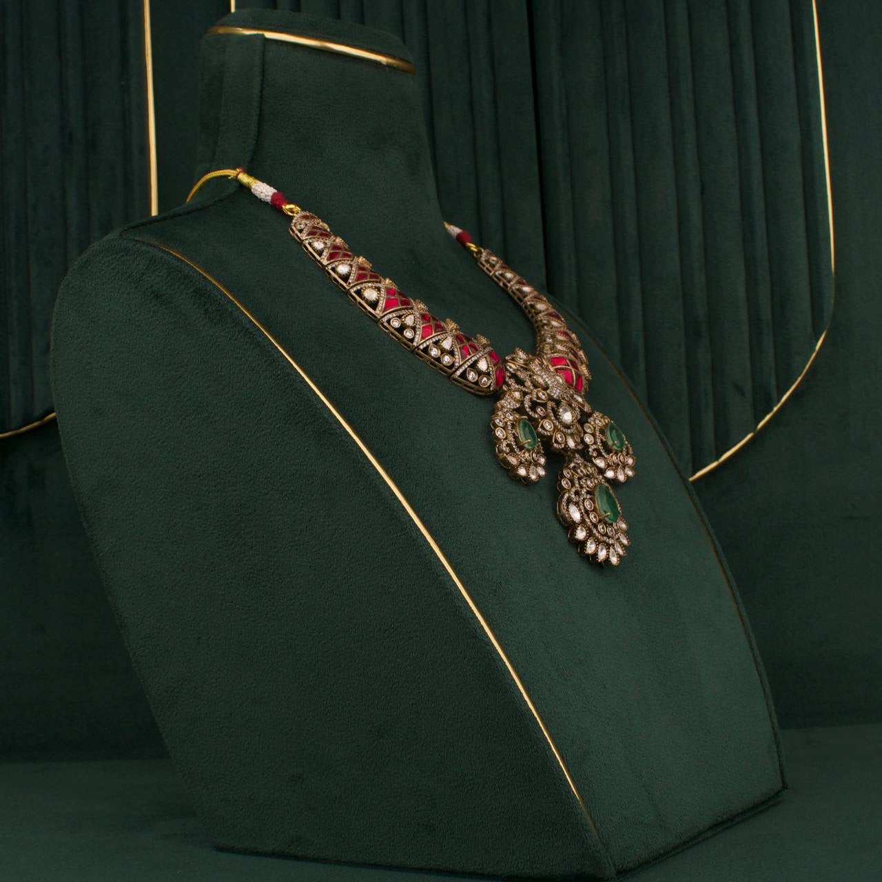 Victorian Kundan Moissanite Polki Necklace Set With Matching Earrings